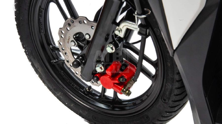 Литые алюминиевые диски, обутые в надёжные покрышки (перед 80/90-14", зад 90/90-14"), словно крепкие сапоги путешественника, уверенно держат сцепление с дорогой.