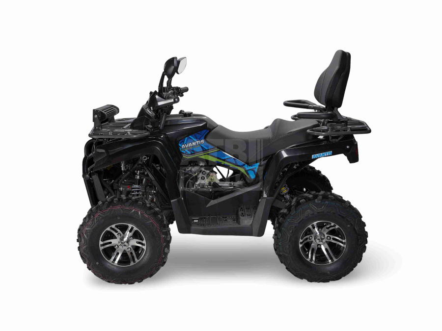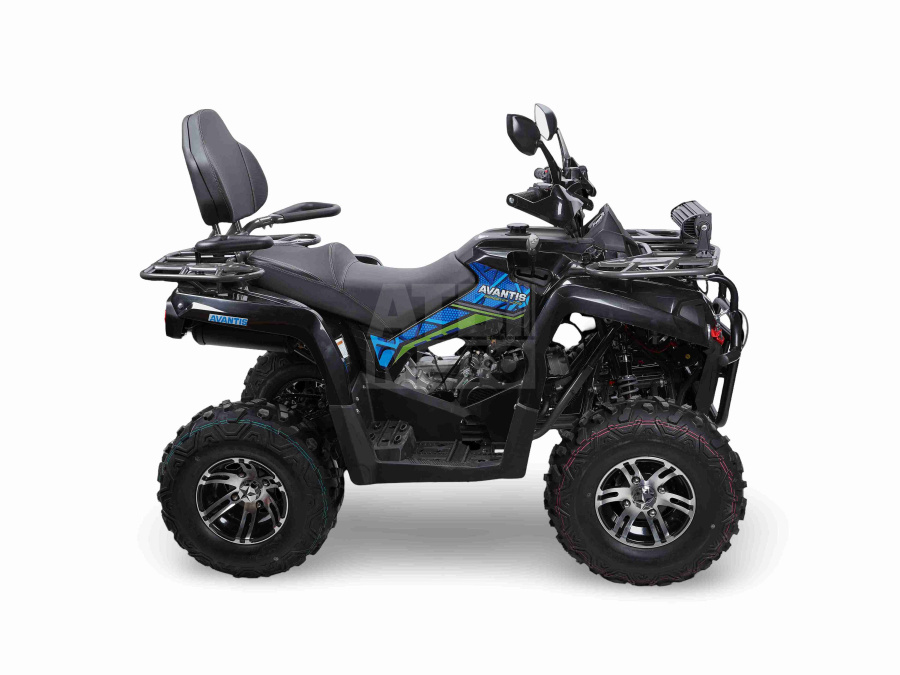 Подвеска с гидравлическими амортизаторами отрабатывает неровности плавно, а прочная рама и правильная геометрия позволяют уверенно двигаться по пересечённой местности. В версии Premium стандартные штампованные колёса заменены на литые диски — более лёгкие и прочные. Помимо этого, в топовой комплектации Forester Long предусмотрены электролебёдка с пультом управления, широкое сиденье, две багажные площадки с накладками, спинка и ручки для пассажира, USB‑разъём и яркие LED‑фары, а также подогрев ручек руля и дополнительная световую балку: всё это делает квадроцикл готовым к длительным поездкам и активному отдыху с комфортом.